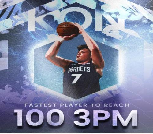 克尼普尔又创造一项纪录。在今天黄蜂对骑士的比赛中,克尼普尔成史上达成100记三分用时最短的球员。这一效率比当年的库里还要快。