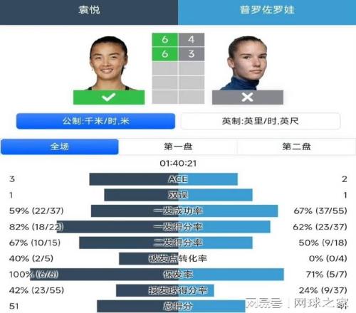 袁悦的这场比赛,从技术风格分析来看,袁悦擅长底线相持和反拍对角线路,而普罗佐罗娃则以发球和正手进攻见长。两人此前从未有过交锋记录,因此,这场比赛的胜负关键可能在于袁悦能否在底线对抗中控制住失误,并抓住对手二发质量不高的机会。
